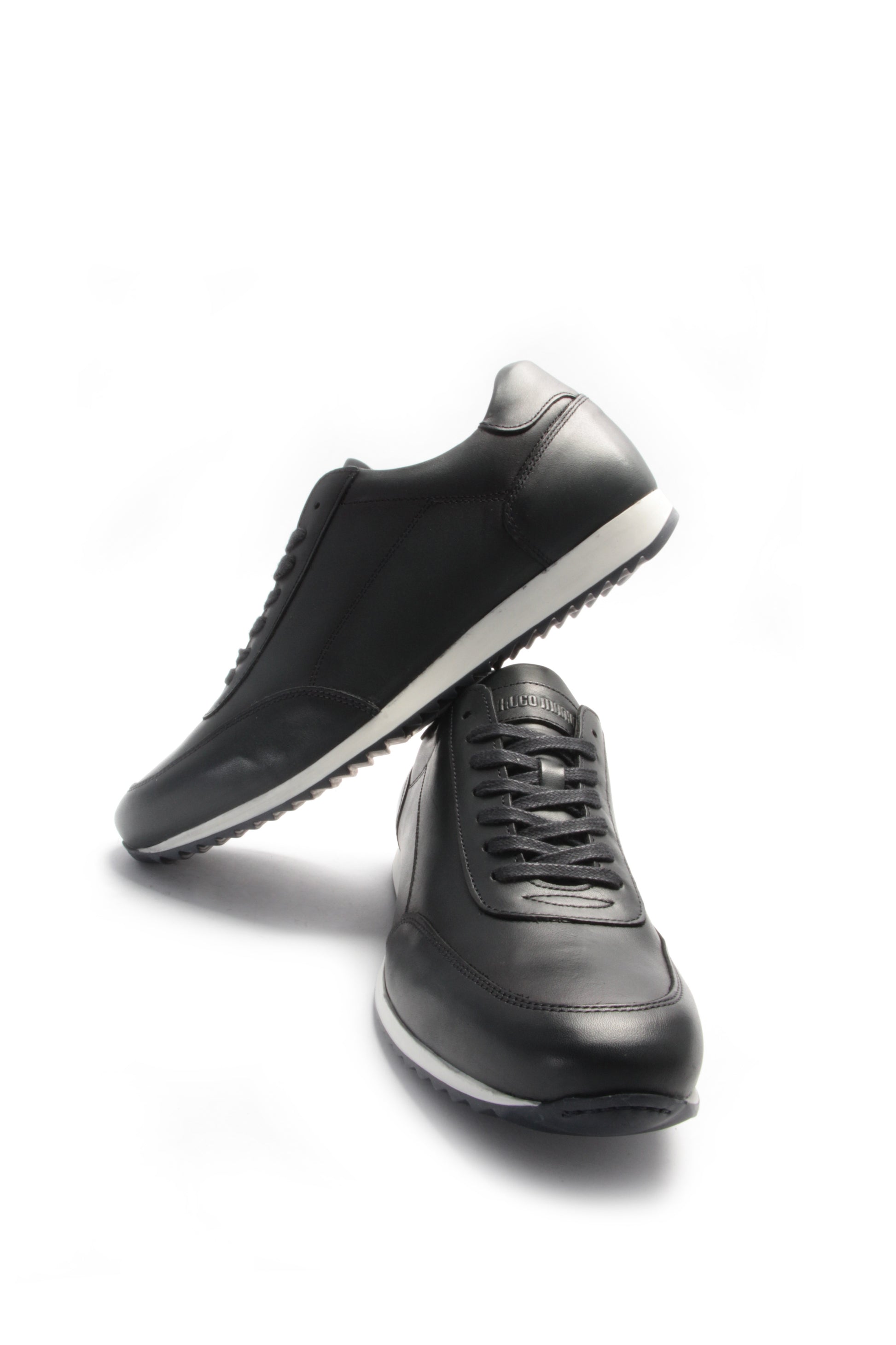 Pormenores de costura no contraforte, gáspea e biqueira.